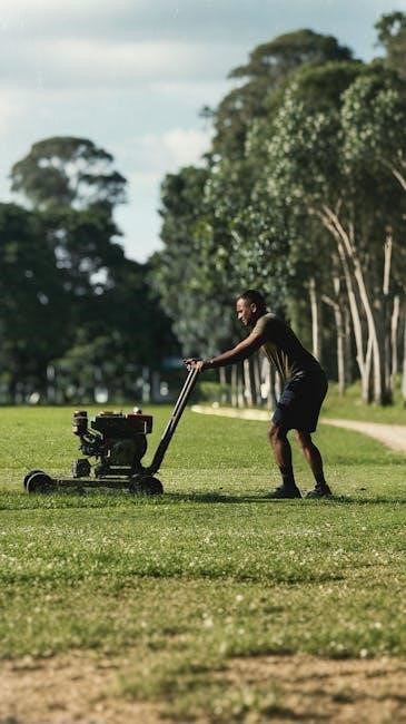 For optimal results‚ overlap each mowing pass by a few inches to prevent scalping and ensure a consistent cut. Maintain a steady walking pace‚ avoiding sudden stops or turns. Adjust mowing speed to grass conditions; slower for thicker grass‚ faster for lighter growth.
